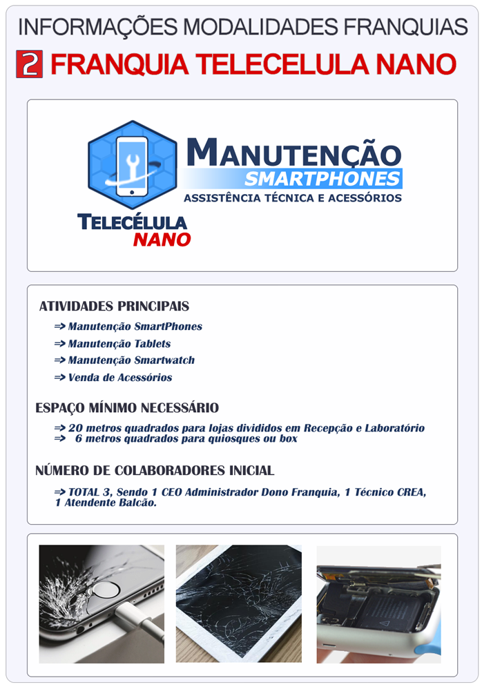 Mais informações no site principal: www.franquiatelecelula.com.br