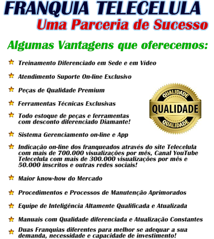Para ser franqueado da Telecelula não basta pagar a taxa de franquia, é necessário trabalhar duro, estar e se fazer sempre presente, focar no bem maior da empresa que é o cliente! Oferecendo a ele o melhor produto, o melhor serviço, sempre!