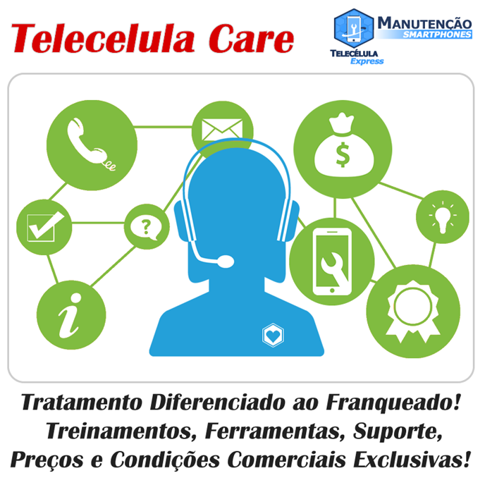 O franqueado terá o acompanhamento da franqueadora que visa a melhoria contínua dos serviços prestados pela REDE. Com o apoio da franqueadora os procedimento e processos do dia a dia serão continuamente melhorados, flexibilizados e estudados caso a caso, sempre com o foco na SATISFAÇÃO 100% GARANTIDA dos clientes da rede TELECELULA MANUTENÇÃO SMARTPHONES.